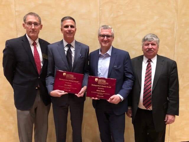 Professor of Finance Mac Clouse represented the Reiman School of Finance in honoring Adam Fiedor (BSBA 1998) and Kurt Hiler (BSBA 1985) with the School’s Distinguished Alumni award. An audience of students, faculty and alumni gathered Feb. 17 in the Tuscan Ballroom to hear the two honorees share about careers and answer questions from students eager to get into the finance industry.